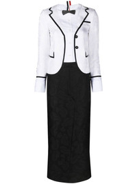 trompe l'oeil tuxedo dress white/black silk-cotton blend trompe l'oeil print round neck long sleeves fitted waistline mid-length straight hem Made in Italy Composition Outer: Cotton 65%, Polyester 21%, Silk 14% Lining: Silk 100% Washing instructions Dry Clean Only