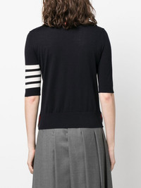turtleneck fine-knit jumper blue/white virgin wool blend fine knit side stripe detailing RWB stripe roll neck short sleeves straight hem Made in Italy Composition Virgin Wool 99%, Polyamide 1% SIZE & FIT Model measurements Height 5 ft 10 in(1.79 m) Bust/Chest 32.67 in(83 cm) Hips 34.25 in(87 cm) Waist 24.4 in(62 cm) Washing instructions Hand Wash