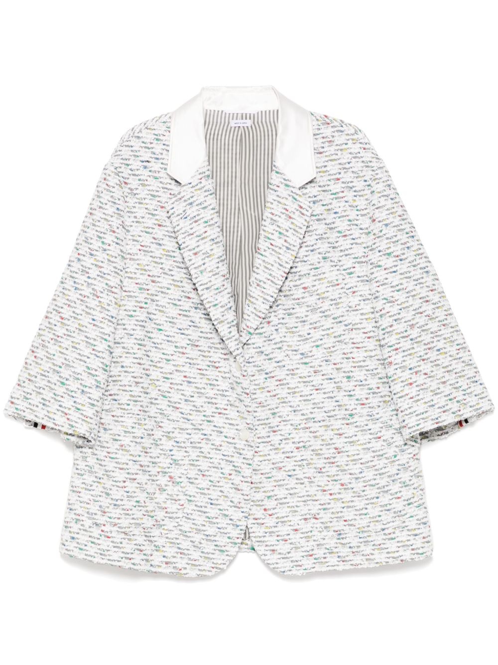 tweed blazer Highlights - Off-white - Front button fastening - Crystal embellishment Imported Composition Outer: Polyamide 71%, Wool 16%, Polyester 8%, Viscose 5% Lining: Silk 100%
