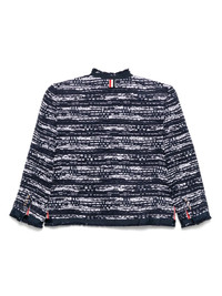 tweed jacket Highlights - Navy blue - Open front - Long sleeves - Internal jetted pocket - Two front patch pockets Made in Italy Composition Outer: Acrylic 42%, Polyamide 39%, Cotton 14%, Polyester 5% Lining: Silk 100%