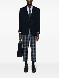 tweed single-breasted blazer Highlights - Navy blue - Tweed - Rwb stripe - Notched lapels - Front button fastening - Long sleeves - Buttoned cuffs - Two front patch pockets - Chest patch pocket - Multiple internal slip pockets - Straight hem - English rear vents - Striped lining - Gold-tone hardware Made in Italy Composition Outer: Fabric 100% Lining: Cupro 100% SIZE & FIT Model measurements Height 6 ft 2 in(1.87 m) Bust/Chest 36.41 in(92.5 cm) Hips 37 in(94 cm) Waist 29.52 in(75 cm) FittingInformation Designed for a boxy fit, intended for a loose fit throughout The vented hem offers movement at the rear Made from a midweight non-stretch fabric This piece fits true to size – take your usual size