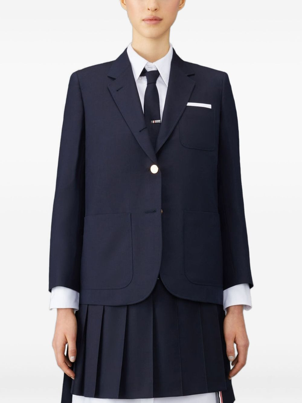 twill gold-button blazer Highlights - Navy blue - Gold buttons - Striped lining - Patch pockets - Button fastening Made in Italy Composition Wool 100% Washing instructions Read Manufacturer Guidelines