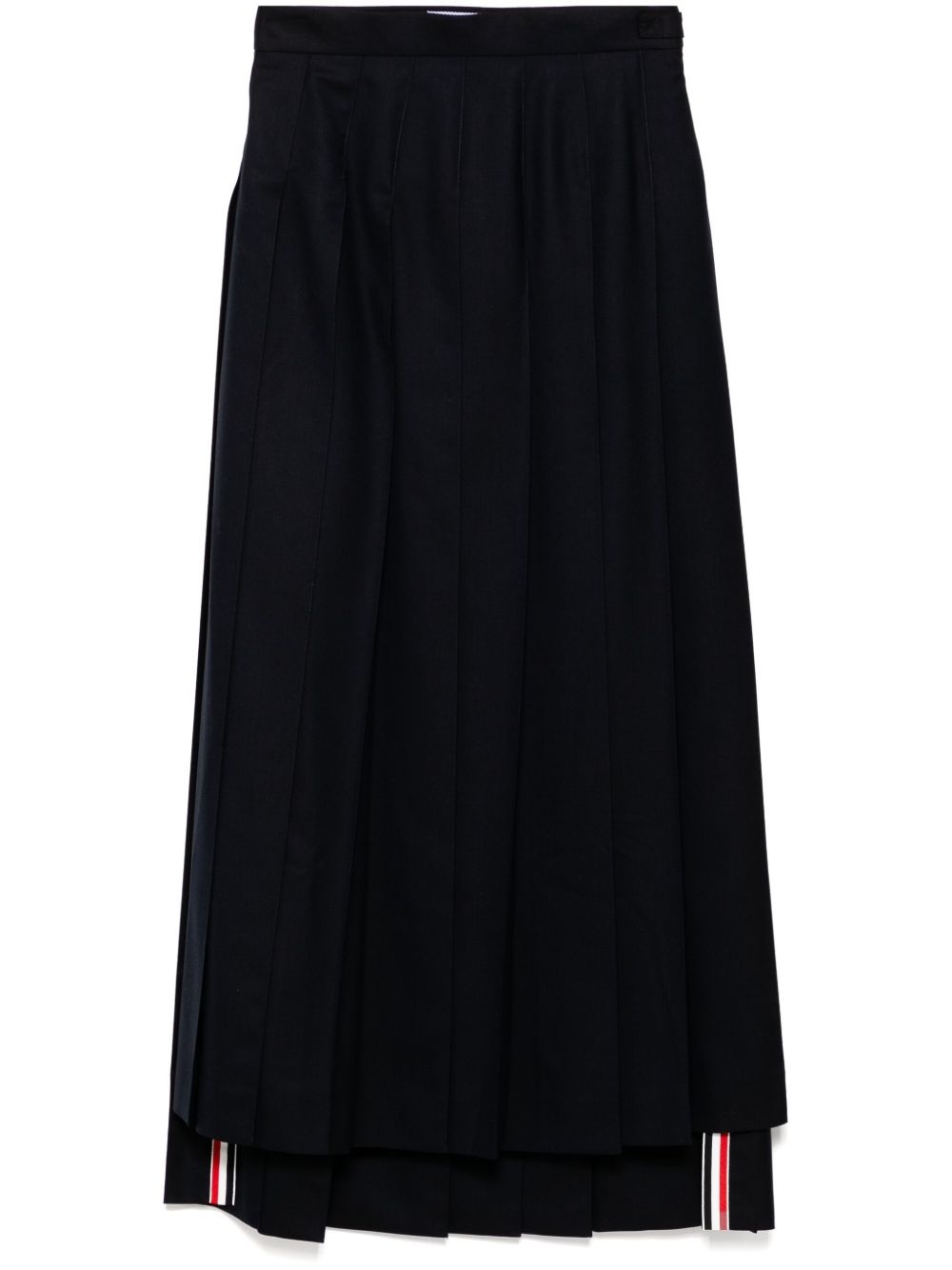 twill pleated skirt Highlights - Navy blue - Concealed side hook and zip fastening - Belted waist tabs - Signature grosgrain loop tab Made in Italy Composition Lining: Cupro 100% Outer: Wool 100%