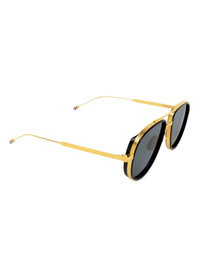 pilot-frame sunglasses Highlights - Gold-tone - Pilot frame - Grey tinted lenses - Straight arms - Curved tips - These glasses come with a protective case. Imported Composition Titanium 100% SIZE & FIT Measurement Arm Length 5.74 in(14.6 cm) Bridge Width 0.7 in(1.8 cm) Lens Diameter 2.2 in(5.6 cm)