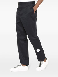 Unconstructed 4-Bar chino trousers Always favouring clean lines and signature house elements, Thom Browne presents these navy blue chinos. Made from cotton, this slightly cropped pair is detailed with the label's recognisable grosgrain loop tab to the rear and a logo patch to the side. Highlights - Navy blue - Cotton - Belt loops - Front button and zip fastening - Two side slit pockets - Logo patch to the side - Signature grosgrain loop tab - Two rear welt pockets Imported Composition Cotton 100% SIZE & FIT FittingInformation Designed for a slim fit, offering a comfortable fit that sits just away from the leg The unfinished hems allow for the length to be altered Made from a midweight non-stretch fabric Washing instructions Dry Clean Only