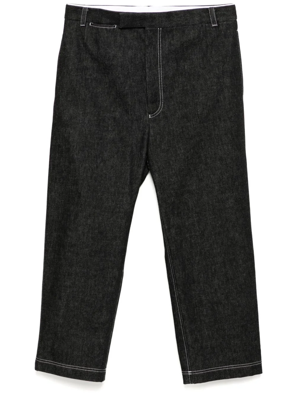 Washed Denim Contrast Topstitching Unconstructed Single Welt Pocket Trouser