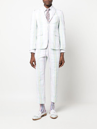 university-stripe long-sleeve shirt In muted multicolour hues, a university stripe details this Thom Browne shirt, adding a lively finish to the classic long-sleeve silhouette. Made in Italy Composition Cotton 100% SIZE & FIT Model measurements Height 6 ft 2 in(1.88 m) Bust/Chest 36.61 in(93 cm) Hips 35.82 in(91 cm) Waist 27.95 in(71 cm) FittingInformation This piece fits true to size. We recommend you get your regular size Cut for a slim fit Made with a mid-weight non-stretch fabric