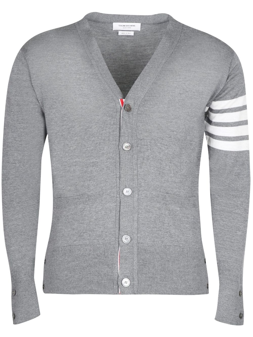 4-Bar cardigan Highlights - Grey/white - Wool - Signature 4-bar stripe - Front button fastening - V-neck - Long sleeves - Ribbed cuffs and hem - Straight hem Made In Italy Composition Wool 100% SIZE & FIT Measurement CHEST 37 in(94 cm) LENGTH 23.62 in(60 cm) SLEEVE LENGTH 22.83 in(58 cm)