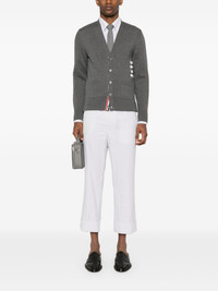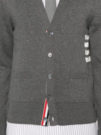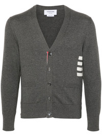V-neck cotton cardigan Highlights - Medium grey - Cotton - Fine knit - Signature 4-bar stripe - Signature grosgrain loop tab - Signature grosgrain side tabs - Ribbed trim - V-neck - Front button fastening - Long sleeves - Buttoned cuffs - Two side patch pockets - Straight hem Made in Italy Composition Cotton 100% SIZE & FIT Model measurements Height 6 ft 2 in(1.88 m) Bust/Chest 35.03 in(89 cm) Hips 35.82 in(91 cm) Waist 27.95 in(71 cm) FittingInformation Designed for a slim fit, offering a comfortable fit that sits just away from the body Made with a midweight knit, this piece offers some stretch This piece fits true to size – take your usual size
