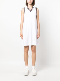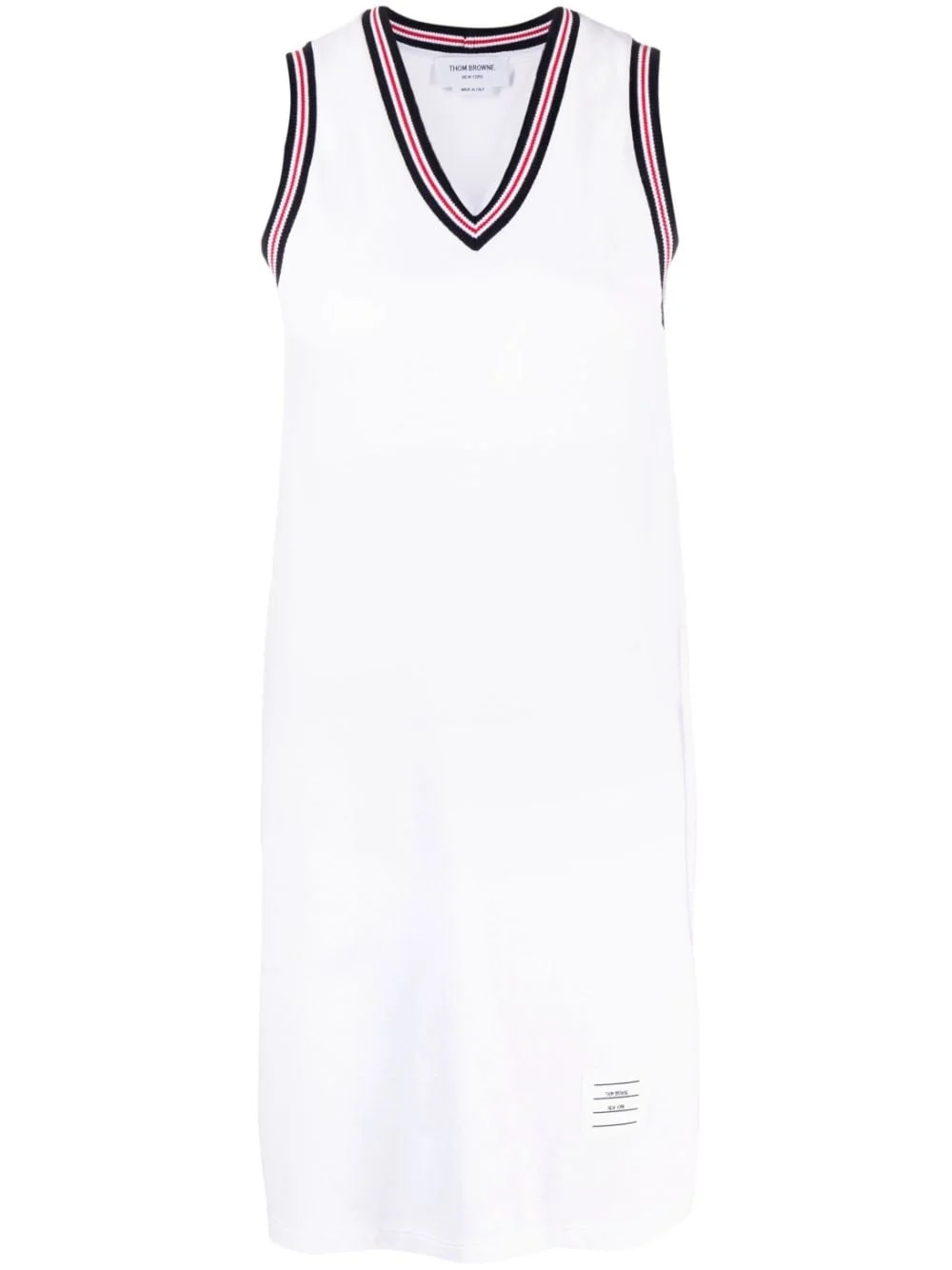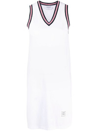 V-neck sleeveless dress Signature details of Thom Browne, such as the grosgrain loop tab makes this sleeveless dress instantly recognisable as the brand. This is also highlighted through the use of a refined, minimalist palette. Made in Italy Composition Outer: Cotton 100%