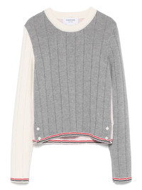 virgin wool ribbed jumper Highlights - Light grey - Press stud-fastening side vents - Colour-block design - Crew neck - Long sleeves Imported Composition Virgin Wool 100% SIZE & FIT Model measurements Height 5 ft 9 in(1.75 m) Bust/Chest 34.64 in(88 cm) Hips 36.61 in(93 cm) Waist 26.37 in(67 cm) FittingInformation Designed for a slim fit that sits just away from the body offering a close yet comfortable fit Made with a midweight knit, this piece offers some stretch