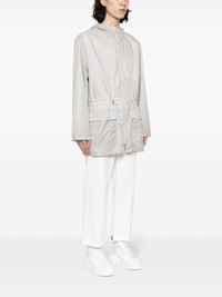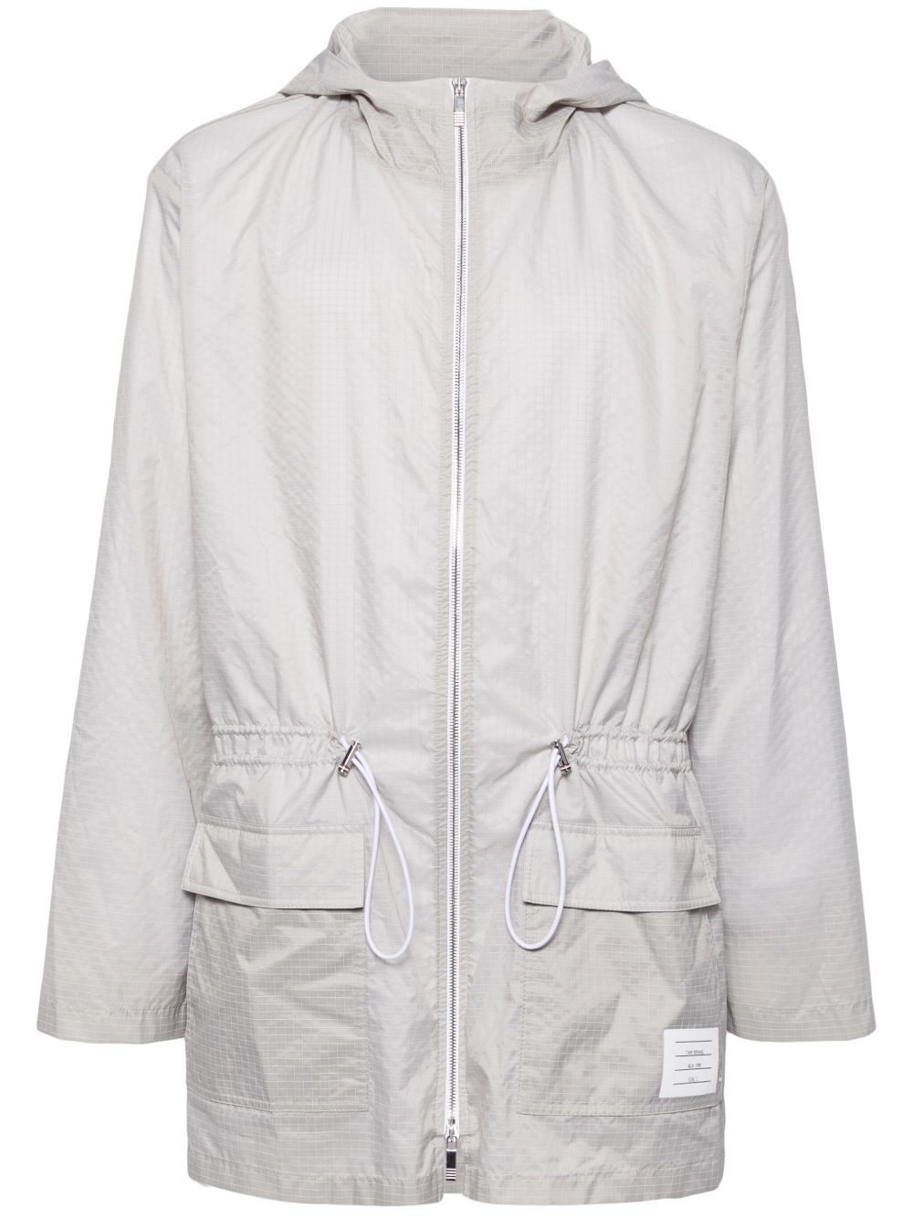 zip-up hooded parka Highlights - Light grey - Ripstop texture - Applique logo - Classic hood - Front two-way zip fastening - Long sleeves - Drawstring fastening waist - Two front flap pockets - Straight hem Made in Italy Composition Lining: Polyester 100% Outer: Polyamide 100% SIZE & FIT Model measurements Height 6 ft 2 in(1.87 m) Bust/Chest 33.07 in(84 cm) Hips 35.43 in(90 cm) Waist 26.77 in(68 cm) FittingInformation Designed to be unstructured, offering a loose fit throughout The adjustable drawstring means that you can adjust this piece’s fit to suit your comfort and preference Made from a lightweight non-stretch fabric This piece fits true to size – take your usual size