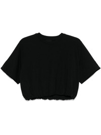 57 T-shirt Highlights - Black - Crew neck - Short sleeves - Puffball hem Imported Composition Cotton 47%, Modal 47%, Elastane 6%