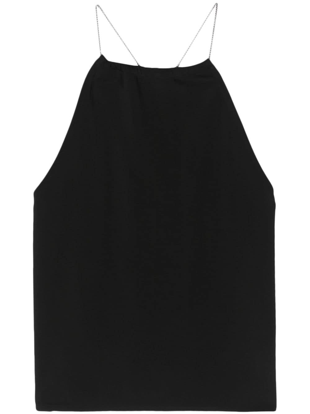 chain-straps gathered tank top Highlights - Black - Gathered neckline - Silver-tone chain-link shoulder straps - Sleeveless - Rear criss-cross straps - Open back - Elasticated rear band - Straight hem Imported Composition Iron 100%, Viscose 96%, Spandex/Elastane 4%