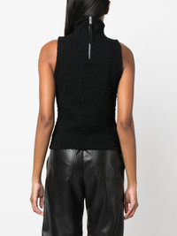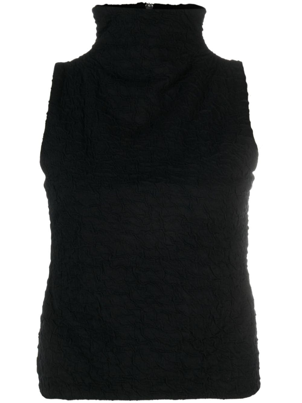 crinkled-finish tank top Highlights - Black - Cotton blend - Crinkled finish - Rear zip fastening - High neck - Sleeveless - Straight hem Imported Composition Cotton 51%, Viscose 45%, Elastane 4% SIZE & FIT Model measurements Height 5 ft 11 in(1.8 m) Bust/Chest 30.7 in(78 cm) Hips 35.03 in(89 cm) Waist 24.4 in(62 cm) FittingInformation Designed for a close fit throughout Made from a midweight stretch fabric, this piece offers elasticity and flexibility when worn This piece fits true to size – take your usual size