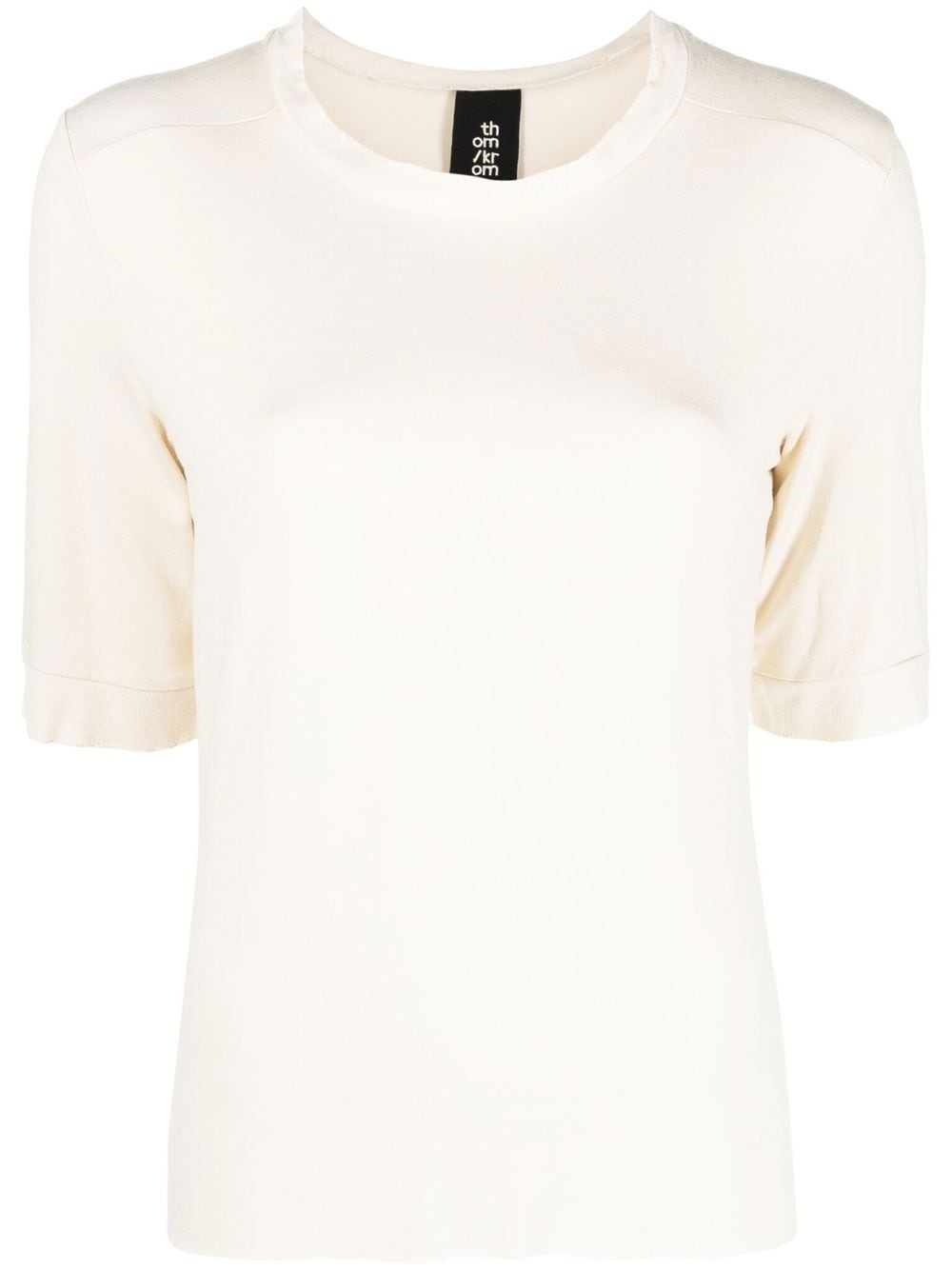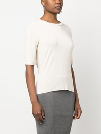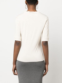 decorative-stitching T-shirt Highlights - Ivory white - Stretch-design - Decorative stitching - Round neck - Short sleeves Imported Composition Viscose 95%, Spandex/Elastane 5% SIZE & FIT Model measurements Height 5 ft 11 in(1.8 m) Bust/Chest 31.49 in(80 cm) Hips 36.61 in(93 cm) Waist 24.4 in(62 cm) FittingInformation This piece fits true to size. We recommend you get your regular size Cut for a slim fit Made with a lightweight stretch fabric