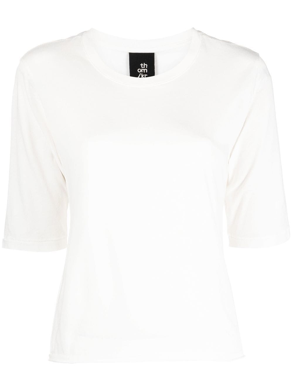 half-sleeves cotton T-Shirt Highlights - Off-white - Cotton-modal blend - Jersey knit - Crew neck - Short sleeves - Straight hem Imported Composition Cotton 50%, Modal 50% SIZE & FIT Model measurements Height 5 ft 10 in(1.77 m) Bust/Chest 30.7 in(78 cm) Hips 35.43 in(90 cm) Waist 23.62 in(60 cm) FittingInformation This piece fits true to size. We recommend you get your regular size Cut for a relaxed fit Made with a mid-weight fabric Washing instructions Machine Wash