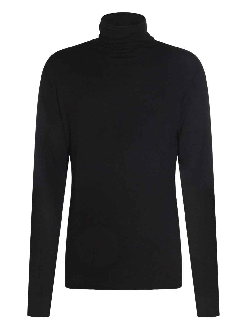 high-neck long-sleeve sweater Highlights - Black - High neck - Long sleeves - Straight hem Imported Composition Viscose 95%, Elastane 5% Washing instructions Read Manufacturer Guidelines