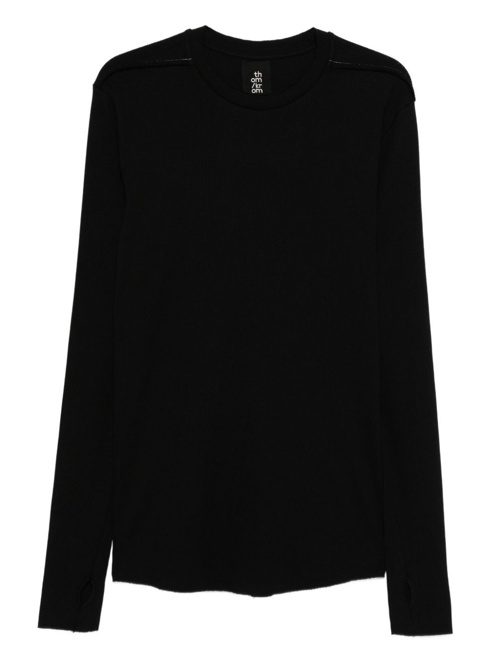 ribbed crew-neck sweater Highlights - Black - Ribbed texture - Round neck - Long sleeves Imported Composition Cotton 97%, Elastane 3% SIZE & FIT Model measurements Height 6 ft 1 in(1.85 m) Bust/Chest 35.82 in(91 cm) Hips 37.79 in(96 cm) Waist 29.13 in(74 cm) Washing instructions Machine Wash