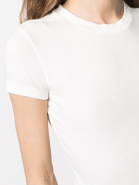 stretch crewneck T-shirt white stretch-cotton blend crew neck short sleeves straight hem Imported Composition Cotton 47%, Modal 47%, Spandex/Elastane 6% SIZE & FIT Model measurements Height 5 ft 11 in(1.8 m) Bust/Chest 31.1 in(79 cm) Hips 34.25 in(87 cm) Waist 22.83 in(58 cm) FittingInformation This piece fits true to size. We recommend you get your regular size Cut for a slim fit Made with a mid-weight stretch fabric