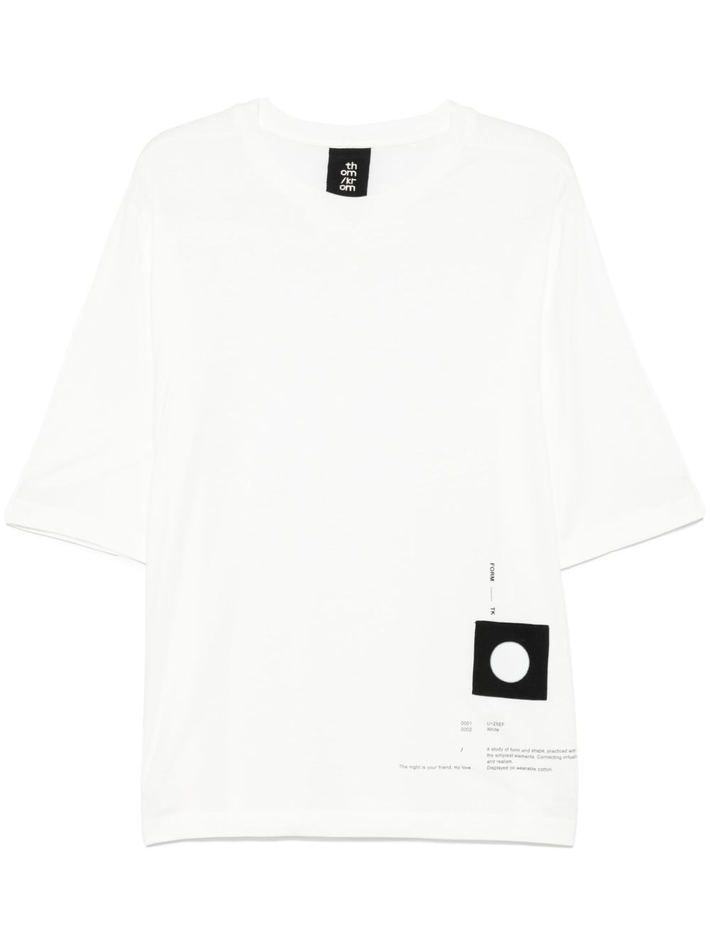 text-print T-shirt Highlights - White - Crew neck - Short sleeves - Straight hem Imported Composition Bamboo 70%, Cotton 30% SIZE & FIT Model measurements Height 6 ft 1 in(1.85 m) Bust/Chest 35.82 in(91 cm) Hips 37.79 in(96 cm) Waist 29.13 in(74 cm) FittingInformation Designed to be unstructured, offering a loose fit throughout Made from a midweight non-stretch fabric, this piece offers minimal elasticity when worn Washing instructions Machine Wash