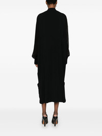 W D 30 midi dress Highlights - Black - Crepe texture - Semi-sheer panels - Concealed front button fastening - Band collar - Long sleeves with jersey cuffs - Side slits - Shift style - Straight hem - Mid-length Imported Composition Rayon 98%, Elastane 2% SIZE & FIT Model measurements Height 5 ft 11 in(1.8 m) Bust/Chest 31.49 in(80 cm) Hips 36.61 in(93 cm) Waist 24.4 in(62 cm) FittingInformation Designed to be unstructured, offering a loose fit throughout Made from a midweight stretch fabric, this piece offers elasticity and flexibility when worn