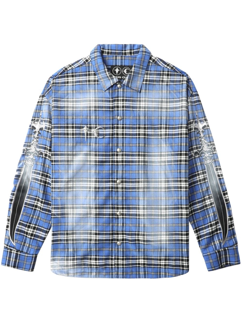 check-pattern shirt Highlights - Blue/multicolour - Check pattern - Front press-stud fastening - Classic collar - Long sleeves - Press-stud fastening cuffs - Sword print - Curved hem Imported Composition Outer: Polyester 65%, Rayon 33%, Spandex/Elastane 2% Lining: Polyester 65%, Cotton 35% Washing instructions Hand Wash