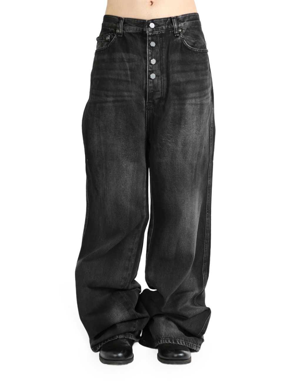 distressed wide-leg jeans Highlights - Black - Cotton - Denim - Distressed finish - Button fly fastening - Belt loops - Classic five pockets - Wide leg Imported Composition Cotton 100%