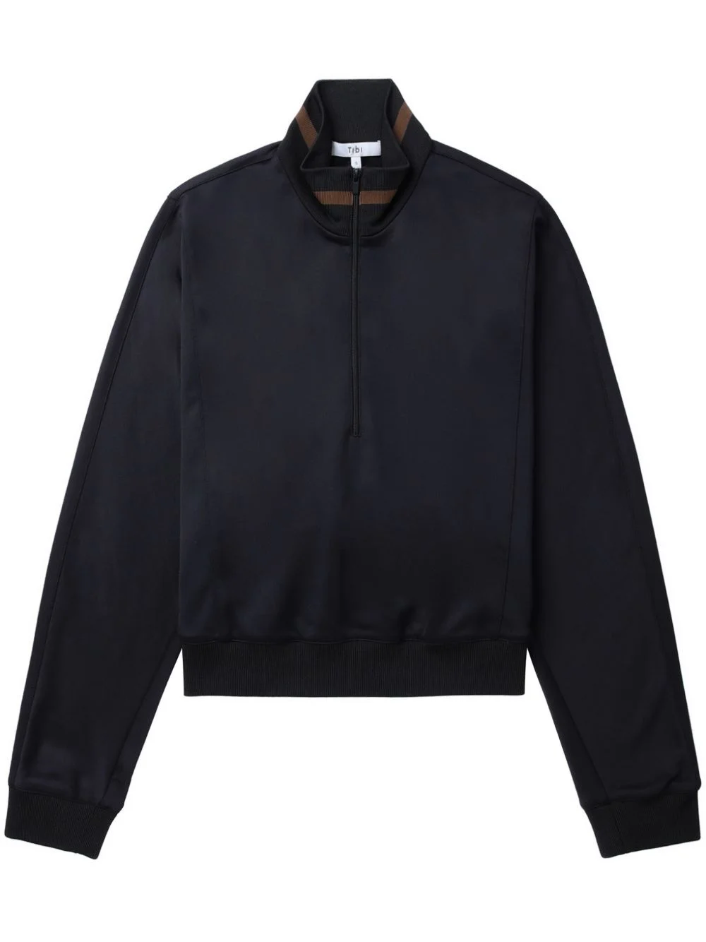 high-neck sweatshirt Highlights - Black - High neck - Half front zip fastening - Stripe detailing - Long sleeves - Ribbed cuffs and hem Imported Composition Polyamide 59%, Cotton 38%, Elastane 3% Washing instructions Read Manufacturer Guidelines