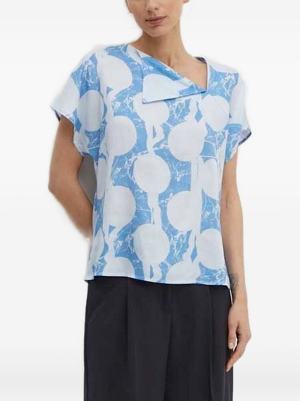 abstract-print short-sleeved blouse Highlights - Light blue - Abstract print - Short sleeves - Asymmetric neckline Imported Composition TENCEL™ Lyocell (LENZING) 100% Washing instructions Read Manufacturer Guidelines