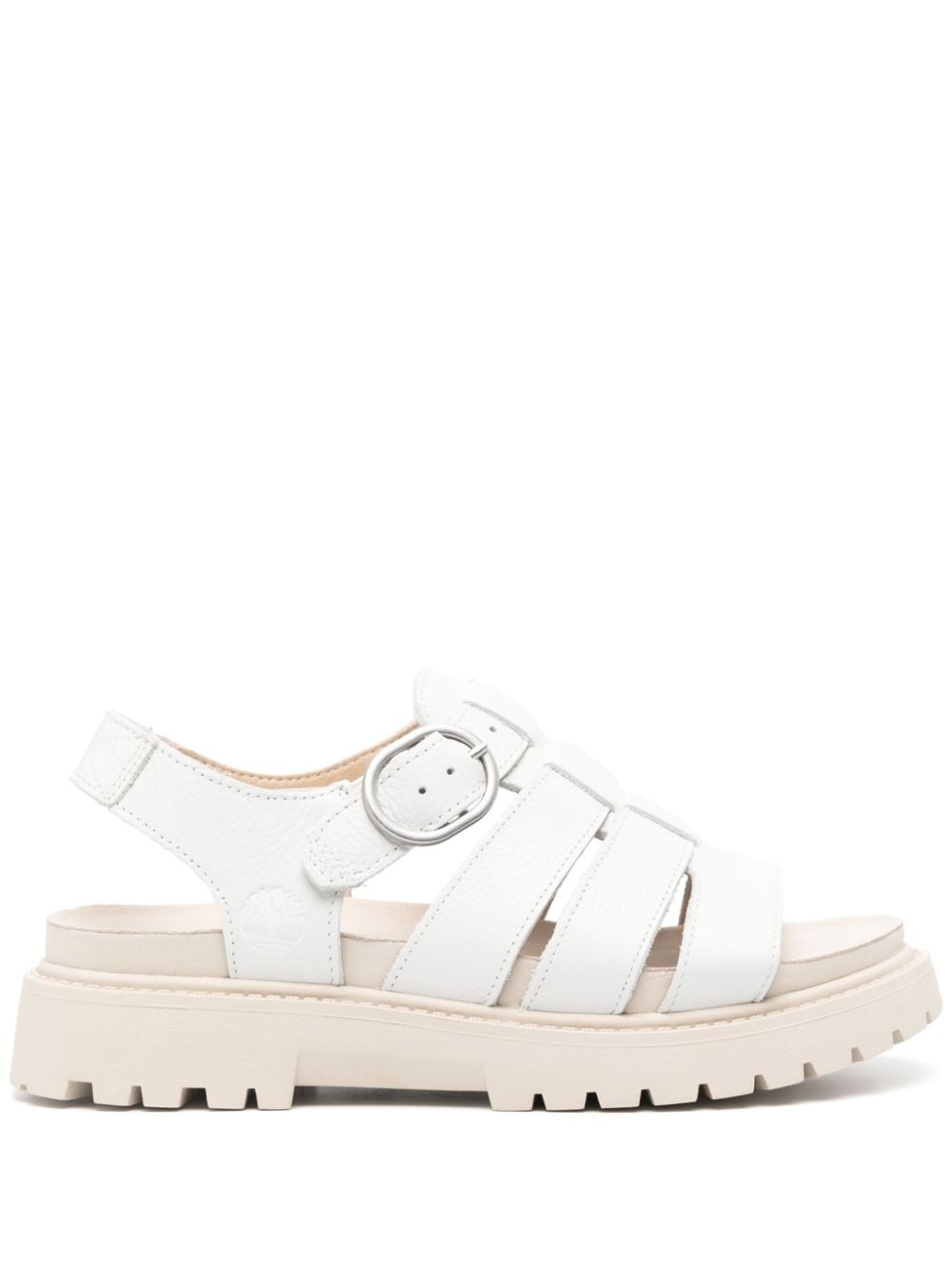 logo-debossed leather sandals Highlights - White - Calf leather - Textured finish - Almond open toe - Multiple straps - Debossed logo to the side - Branded insole - Ridged rubber sole - Side buckle fastening Imported Composition Outer: Calf Leather 100% Sole: Rubber 100% Lining: Fabric 100% SIZE & FIT Measurement HEEL 1.77 in(4.5 cm) Sole height 1.18 in(3 cm)