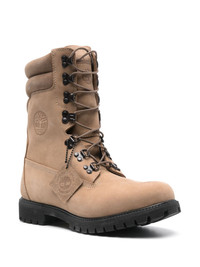Premium Tall boots Highlights - Taupe - Nubuck leather - Waterproof - Stacked heel - Front lace-up fastening - Ankle-length - Debossed logo to the side and tongue - Round toe - Rubber lug sole Imported Composition Lining: Calf Leather 100%, Fabric 100% Sole: Rubber 100% Outer: Nubuck Leather 100% SIZE & FIT Measurement HEEL 1.57 in(4 cm) HEIGHT 8.85 in(22.5 cm) Sole height 0.78 in(2 cm)