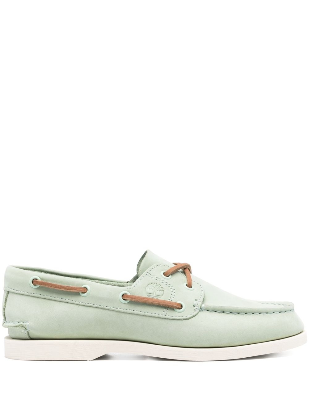 suede boat shoes Highlights - Mint green - Front lace-up fastening - Flat rubber sole - Debossed logo to the side - Moc stitching Imported Composition Lining: Calf Leather 100%, Fabric 100% Outer: Calf Leather 100% Sole: Rubber 100%