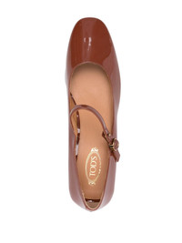 40mm leather pumps Highlights - Camel brown - Calf leather - Patent finish - Almond toe - Gold-tone logo plaque - Branded leather insole - Contrast lining - Low block heel - Leather sole - Buckle-strap fastening Made in Italy Composition Other fibres 100% SIZE & FIT Measurement HEEL 1.57 in(4 cm)