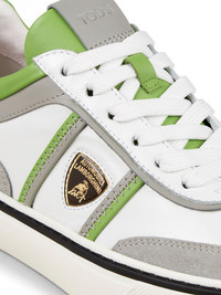 Automobili Lamborghini logo-debossed low-top sneakers Highlights - White/grey/bright green - Lambskin/calf suede - Colour-block panelled design - Logo-debossed tongue - Logo plaque - Logo at the sole - Round toe - Front lace-up fastening - Branded insole - Flat rubber sole Made in Italy Composition Leather 100%