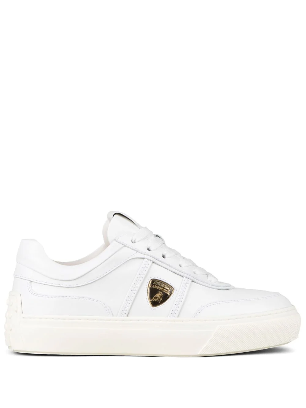 Automobili Lamborghini logo-debossed low-top sneakers Highlights - White - Lambskin - Logo-debossed tongue - Logo plaque - Logo at the sole - Round toe - Front lace-up fastening - Branded insole - Flat rubber sole Imported Composition Leather 100%