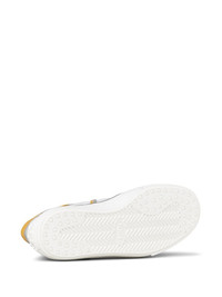 Automobili Lamborghini panelled lace-up leather sneakers Highlights - White/mustard yellow/grey - Leather - Panelled design - Front lace-up fastening - Logo-embossed tongue - Logo patch to the side Made in Italy Composition Outer: Leather 100% Lining: Leather 100% Sole: Rubber 100%