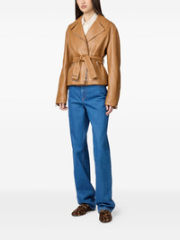 belted leather jacket Highlights - Light brown - Leather construction - Belted waist - Asymmetrical zip - Zip cuffs Made in Italy Composition Lambskin 100% Washing instructions Read Manufacturer Guidelines