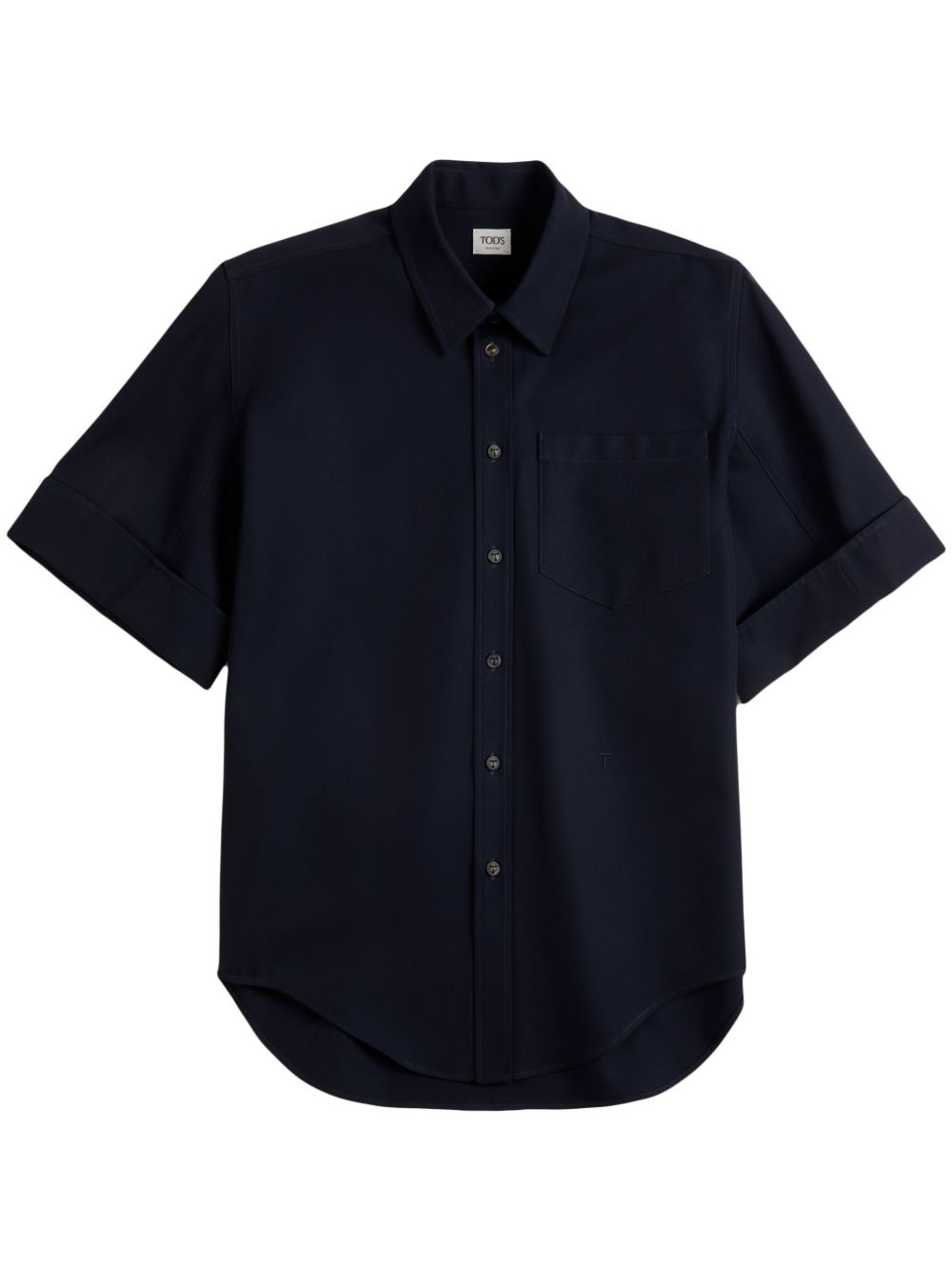 belted shirt Highlights - Prussian blue - Front button fastening - Chest patch pocket - Short sleeves - Turn-up cuffs Made in Italy Composition Virgin Wool 62%, Cotton 38%