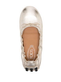 Bubble Ballerina leather shoes Tod's elevates the timeless ballerina silhouette for SS23 in these gold-tone slip-on shoes. Showcasing a smooth leather construction, they're finished with the brand's signature pebbled sole and a delicate tonal bow. Highlights - Gold-tone - Calf leather - Bow detailing - Round toe - Slip-on style - Branded leather insole - Signature gommino sole Made in Italy Composition Sole: Rubber 100%, Calf Leather 100% Lining: Calf Leather 100% Outer: Calf Leather 100% SIZE & FIT Measurement HEEL 0.98 in(2.5 cm) Sole height 0.78 in(2 cm)