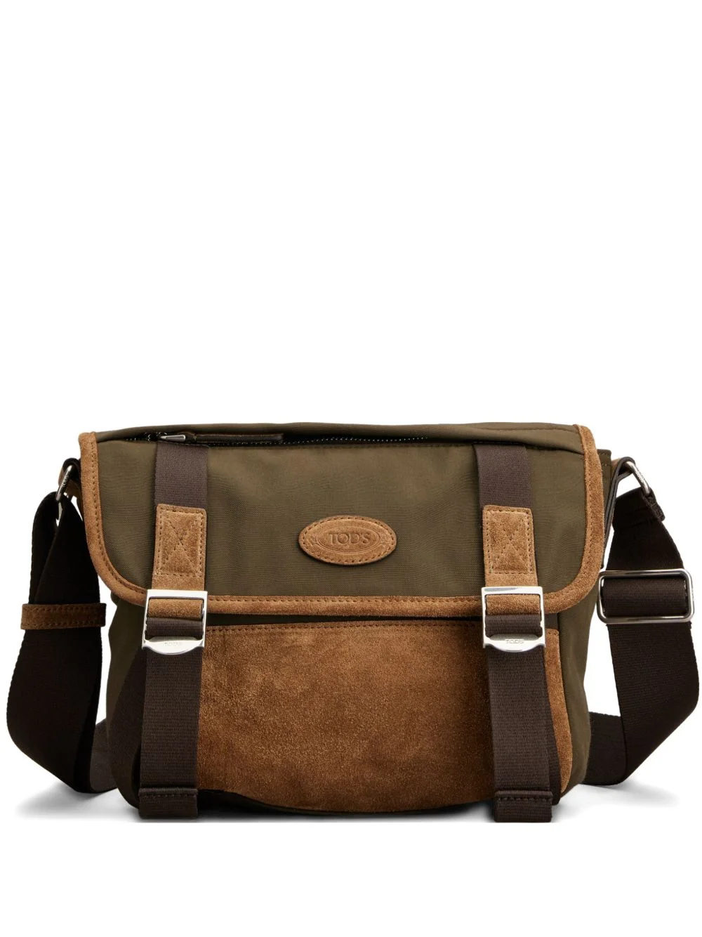 buckle messenger bag Highlights - Green and brown - Trim - Logo patch - Buckle fastening - Adjustable shoulder strap - Zip fastening Made in Italy Composition Outer: Fabric 100%, Polyester 39%, Cotton 30%, Calf Leather 30%