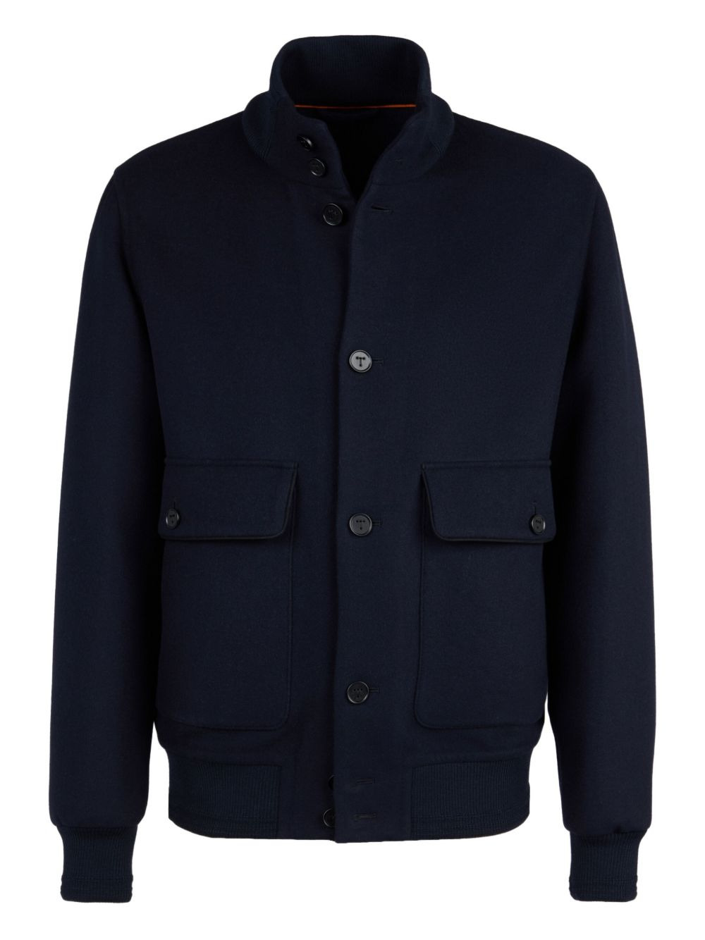 button-up bomber jacket Highlights - Navy blue - Wool - Front button fastening - Long sleeves - Side flap pockets Made in Italy Composition Virgin Wool 100% Washing instructions Read Manufacturer Guidelines