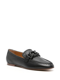 chain-link leather loafers Tod’s is renowned for its craftsmanship and quality which it has been perfecting for over one hundred years. Presented in a sleek black hue, these loafers feature an eye-catching chain-link horsebit detail that complements the classic silhouette. Highlights - Black - Calf leather - Leather chain-link detailing - Whipstitch trim - Slip-on style - Round toe - Leather lining - Branded leather insole - Flat sole - This piece comes complete with a protective dust bag. Made in Italy Composition Outer: Calf Leather 100% Lining: Calf Leather 100% Sole: Calf Leather 100%, Rubber 100% SIZE & FIT Measurement HEEL 0.39 in(1 cm)