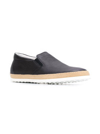 slip-on espadrilles Highlights - Navy blue cotton and leather classic slip on sneakers from tod's. Made in Italy Composition Outer: Calf Leather 100% Lining: Calf Leather 100%, Cotton 100% Sole: Rubber 100%