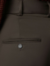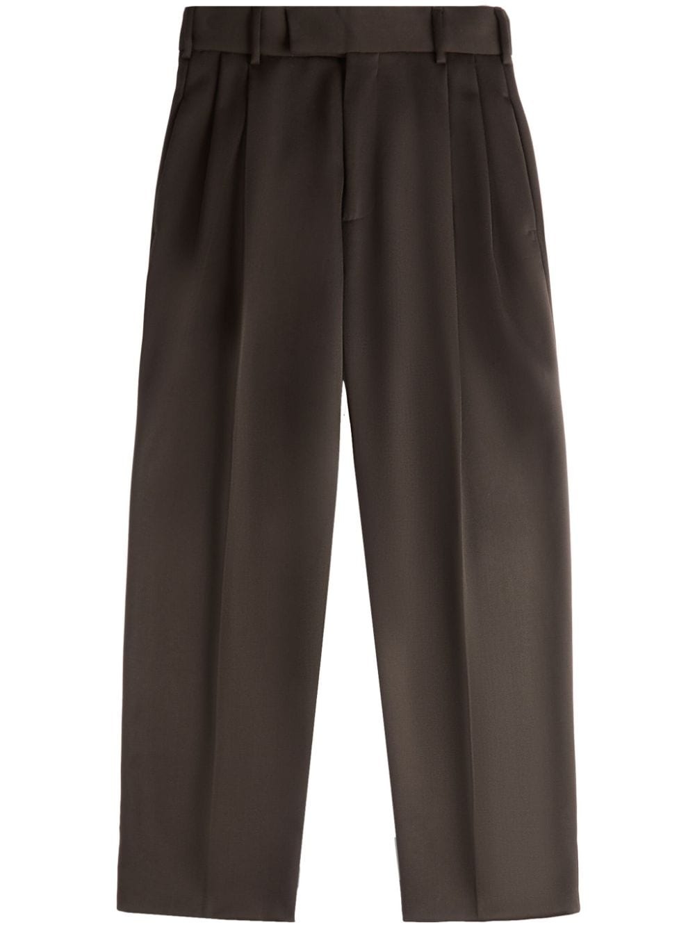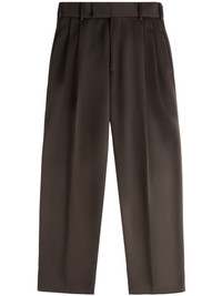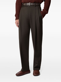 classic tapered trousers Highlights - Brown - Virgin wool - Belt loops - Pleat detailing - Pressed crease - Two side inset pockets - Two rear button-fastening jetted pockets - Mid-rise - Tapered leg - Concealed front fastening Made in Italy Composition Virgin Wool 100% Washing instructions Read Manufacturer Guidelines
