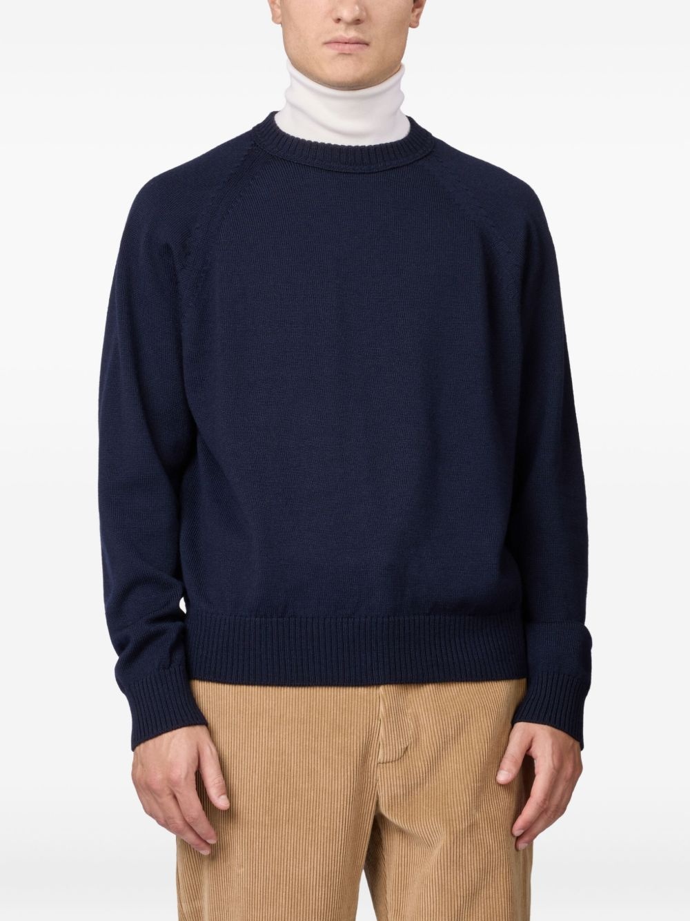 ROUND-NECK PULLOVER IN MERINO WOOL - BLUE