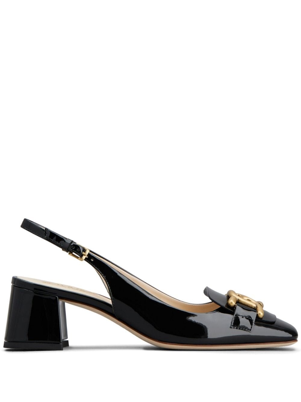 Cuoio 50mm logo-engraved pumps Highlights - Black - Leather - Patent finish - Gold-tone hardware - Buckle detail at the toe - Engraved logo - Square toe - Buckle-fastening slingback strap - Branded leather insole - 50mm block heel - Leather sole Made in Italy Composition Outer: CALFSKIN 100% Sole: CALFSKIN 100% Lining: CALFSKIN 100% SIZE & FIT Measurement HEEL 2.16 in(5.5 cm) HEIGHT 1.57 in(4 cm)