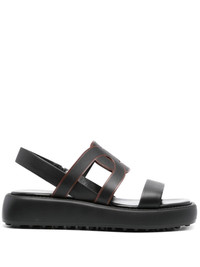 cut-out chain leather sandals These Tod's sandals are characterised by their wide contoured strap that nods to the label's iconic chain accessory. They're crafted in Italy from black calf leather with an open square toe and a platform sole. Highlights - Black - Calf leather - Contrasting trim - Square toe - Cut-out detailing - Slingback strap - Branded footbed - Platform sole - Rubber lug sole - Slip-on style Made in Italy Composition Leather 100% SIZE & FIT Measurement HEEL 1.37 in(3.5 cm) Sole height 0.98 in(2.5 cm)