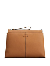 Di leather clutch bag Highlights - Camel brown - Calf leather - Pebbled texture - Logo patch to the front - T-logo stitching - Top zip fastening - Wrist strap - Main compartment - Suede lining Made in Italy Composition Outer: CALFSKIN 100% SIZE & FIT Measurement DEPTH 1.96 in(5 cm) HEIGHT 10.23 in(26 cm) WIDTH 14.76 in(37.5 cm) HANDLE 7.08 in(18 cm)