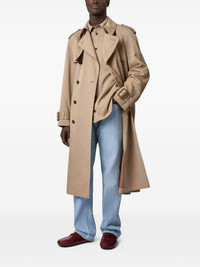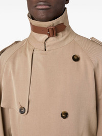 double-breasted trench coat Highlights - Beige - Double-breasted button fastening - Belted waist - Shoulder epaulettes - Large front pockets - Buttoned cuffs Made in Italy Composition Lining: Cotton 100%, Cupro 100% Outer: Virgin Wool 100% Washing instructions Read Manufacturer Guidelines